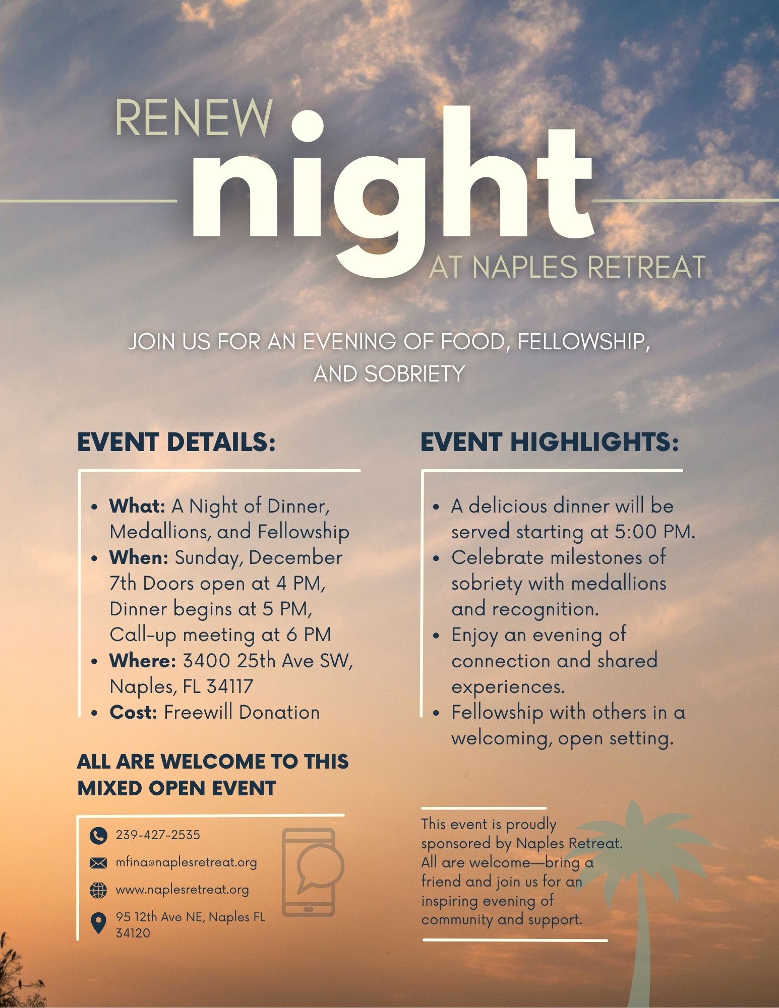 Join us for a community-first day of golf, fellowship, and celebration. Play as a 2-player team, take a shot at our Putting Contest, then stay for the Gala Dinner where we’ll present awards and share stories of impact from the Naples Retreat men’s recovery community.